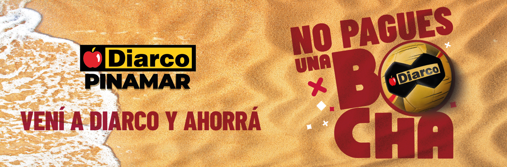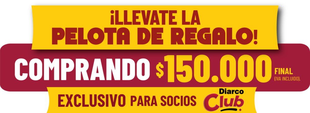 Promoción válida del 20/12/2025 al 28/02/2026, o hasta agotar stock, lo que ocurra primero. Válida exclusivamente en la sucursal ubicada en Ruta N.º 11 Km 397, Partido de General Madariaga, Provincia de Buenos Aires. Por cada compra de $150.000 (precio final) o más realizada por socios Diarco Club y efectuada en el salón de ventas, el cliente recibirá sin cargo una (1) pelota de fútbol N.º 5 marca Diarco (cód. ALICFB251). Una (1) pelota por cliente y por compra. No acumulable: no se entregarán pelotas adicionales por alcanzar múltiplos del monto mínimo en una misma compra. No válida para ventas a comerciantes, ventas por oficina ni compras mediante envíos. El obsequio no es canjeable por dinero ni por otros productos. Participación sin obligación de compra: enviar un dibujo hecho a mano y con precisión exacta de la fachada de la sucursal Pinamar a info@diarco.com.ar. Si el dibujo coincide con la fachada, se enviará una respuesta dentro de un plazo máximo de 10 días hábiles indicando día y lugar de retiro de la pelota.