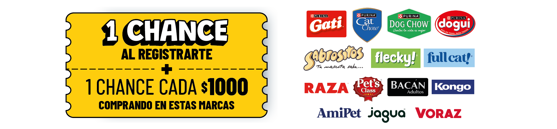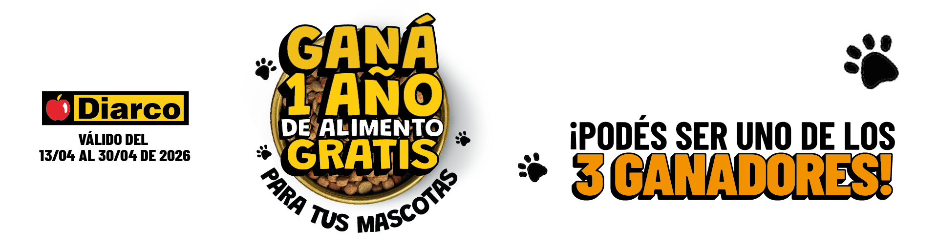 PROMOCIÓN VÁLIDA DEL 13/04 AL 30/04/2026. EXCLUSIVA EN DIARCO FORMATO MAYORISTA. PARTICIPACIÓN SIN OBLIGACIÓN DE COMPRA. CADA $1.000 EN PRODUCTOS DE LAS MARCAS PARTICIPANTES (GATI, CAT CHOW, DOG CHOW, DOGUI, SABROSITOS, FLECKY, FULL CAT, RAZA, PET’S CLASS, BACAN, KONGO, AMIPET, JAGUA, VORAZ) SUMA CHANCES ADICIONALES DURANTE LA VIGENCIA DE LA PROMOCIÓN. CONSULTÁ BASES Y CONDICIONES EN WWW.DIARCO.COM.AR/CAMPANIAS/SORTEO-MASCOTAS-ABRIL